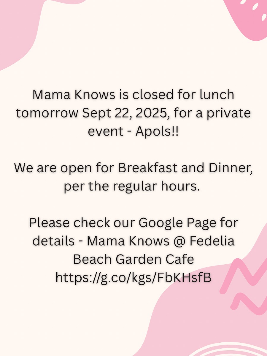 Mama Knows @ Fedelia Beach Garden Cafe